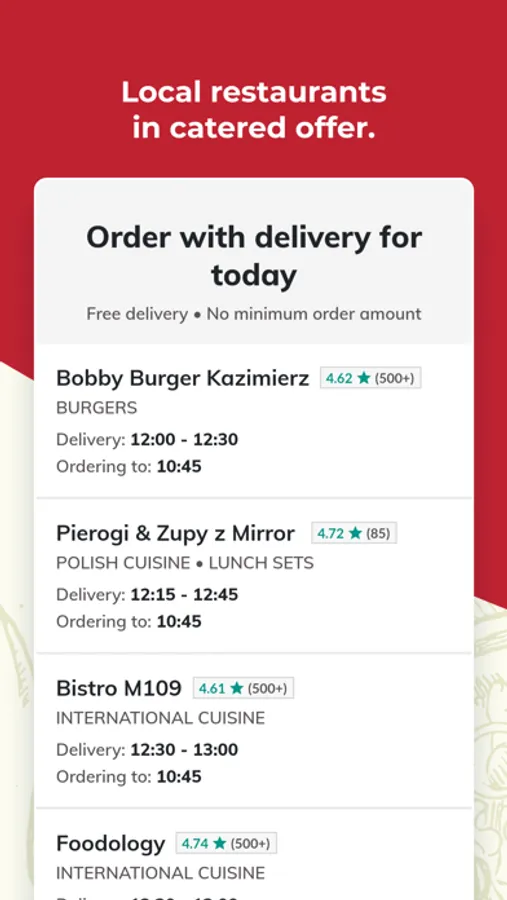 Lunching offers tasty meals from local restaurants with free delivery. How is it possible? You order earlier for a set delivery time. Restaurants can better plan their work, and you get your meal delivered to your home or office for free!