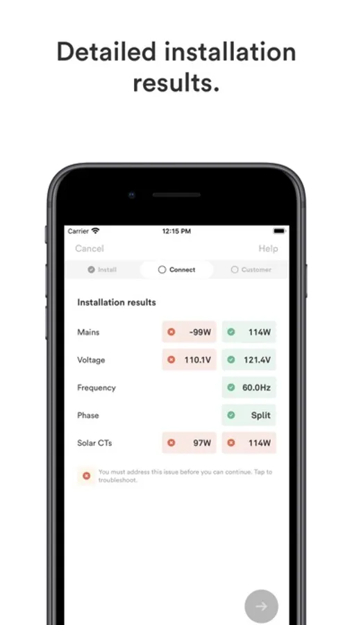 The Sense Pro app enables professional electricians to verify and troubleshoot the installation of a Sense Home Energy Monitor. Using the Sense Pro app, installers of Sense receive guided installation instructions and feedback during the installation process to ensure proper installation.