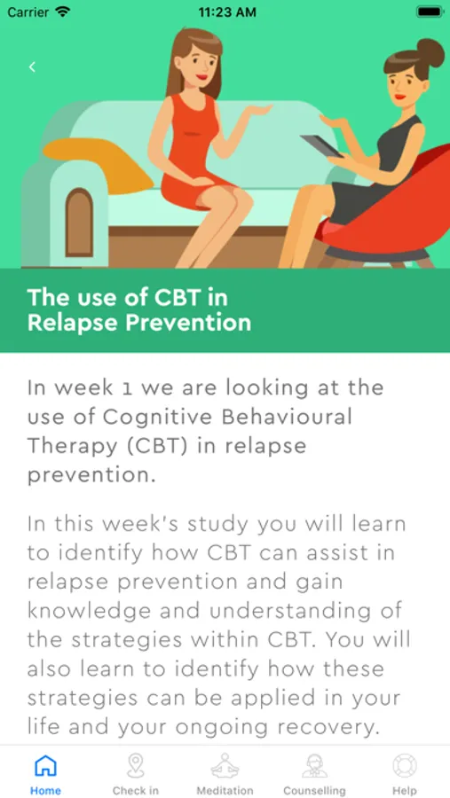 1) Daily check ins so you and your counsellor can monitor your ongoing health and wellbeing and to help identify triggers and flashpoints