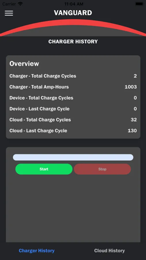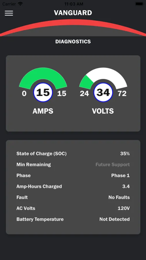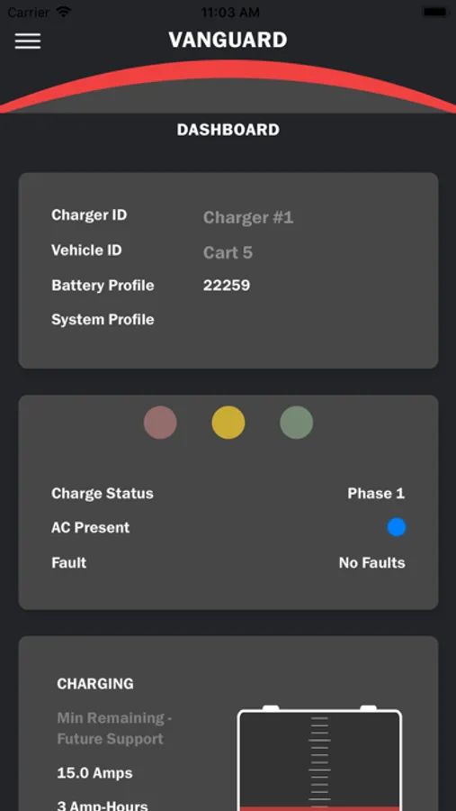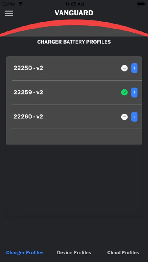 The Vanguard Lithium application interfaces wirelessly with Vanguard battery chargers over Bluetooth Smart.