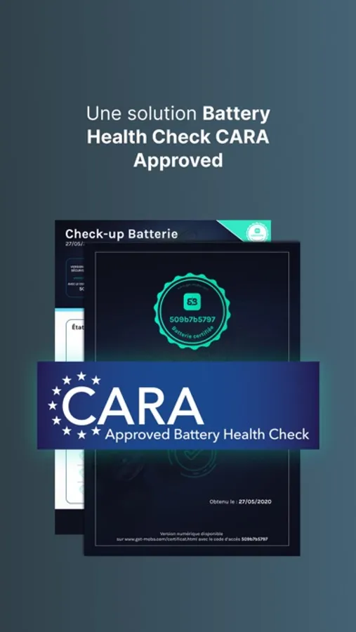 Le certificat Moba et la solution Moba Certify Pro ont obtenu en 2023 la certification "Battery Health Check CARA Approved", ce qui garantie :
