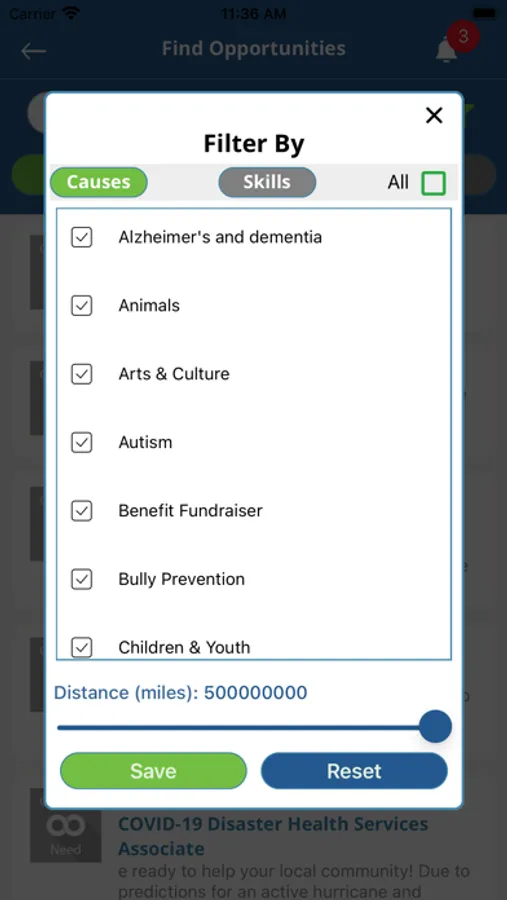 a.Notifications when organisations post needs or events that match Volunteer cause selections