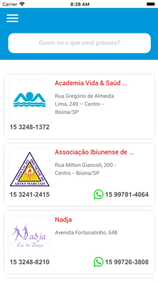 - Localize empresas, profissionais liberais, prestadores de serviços e outros através de uma grade.