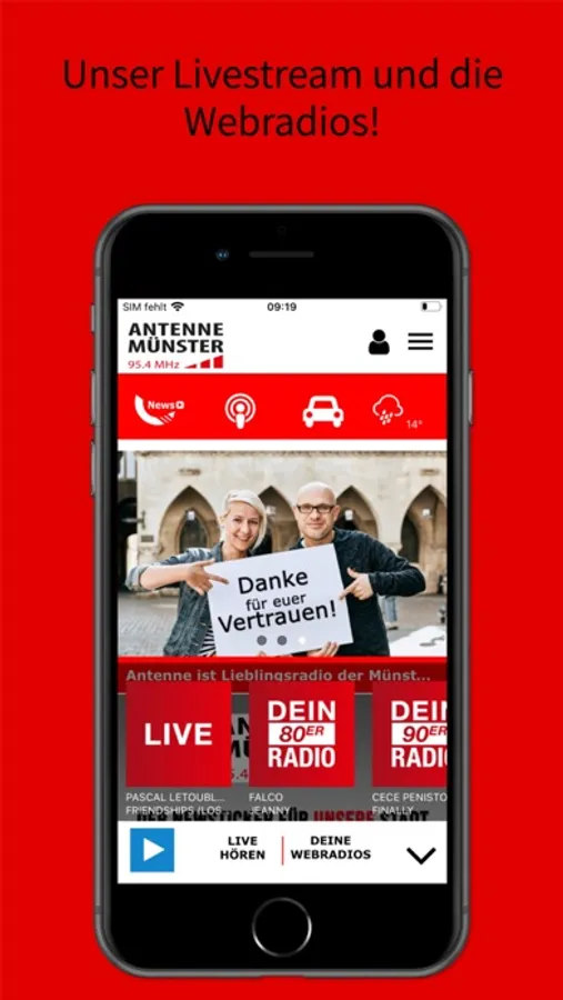 Mit unserer App hast Du ANTENNE MÜNSTER immer griffbereit. Alle Infos jederzeit auf Deinem Smartphone.