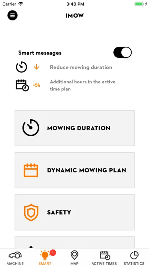 Customize the mowing duration from any location with your iMOW® app. Activate the dynamic mowing plan and have your iMOW® define the mowing duration itself.
