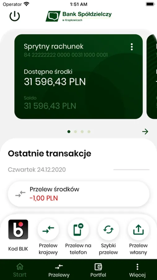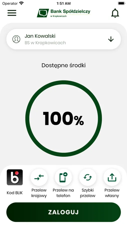 BS Krapkowice to aplikacja dla klientów Banku Spółdzielczego w Krapkowicach, umożliwiająca w bezpieczny i wygodny sposób wykonywanie transakcji, autoryzowanie operacji wykonywanych w serwisie bankowości elektronicznej, a także pozwalająca na podgląd historii operacji, informacji o produktach, blokadach, saldach i szczegółach operacji.