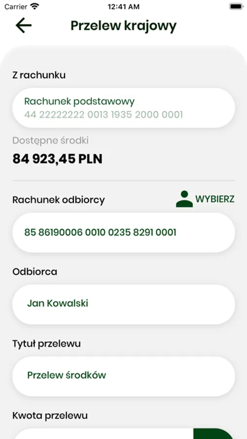 - wyświetlanie szczegółów każdej autoryzowanej operacji (m.in. kwoty operacji, danych odbiorcy przelewu),