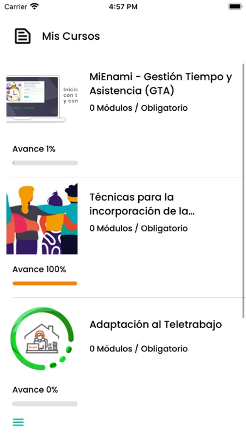 Aplicación para Enami que permite la realización de cursos online