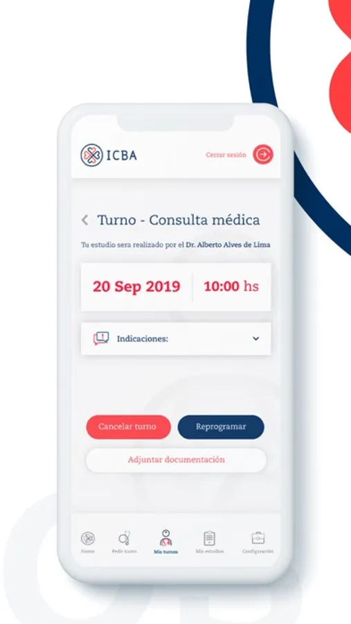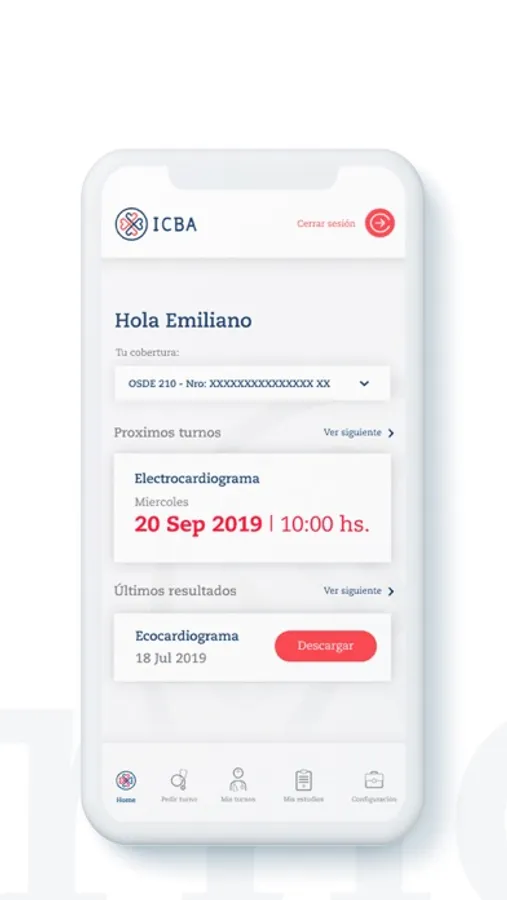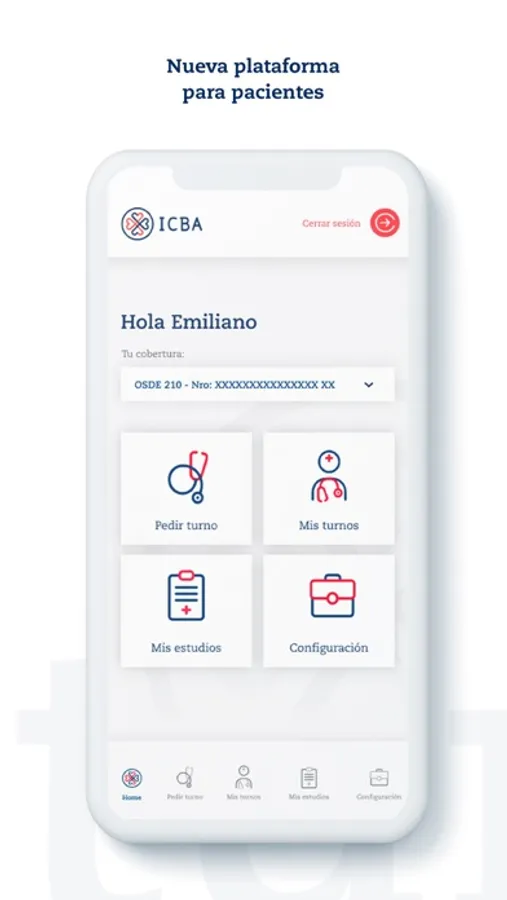 Con nuestra nueva app del ICBA, podrás registrarte, pedir turnos tanto por especialidad como por profesional, ver tus turnos, visualizar tus estudios, recibir notificaciones y consultar horarios.