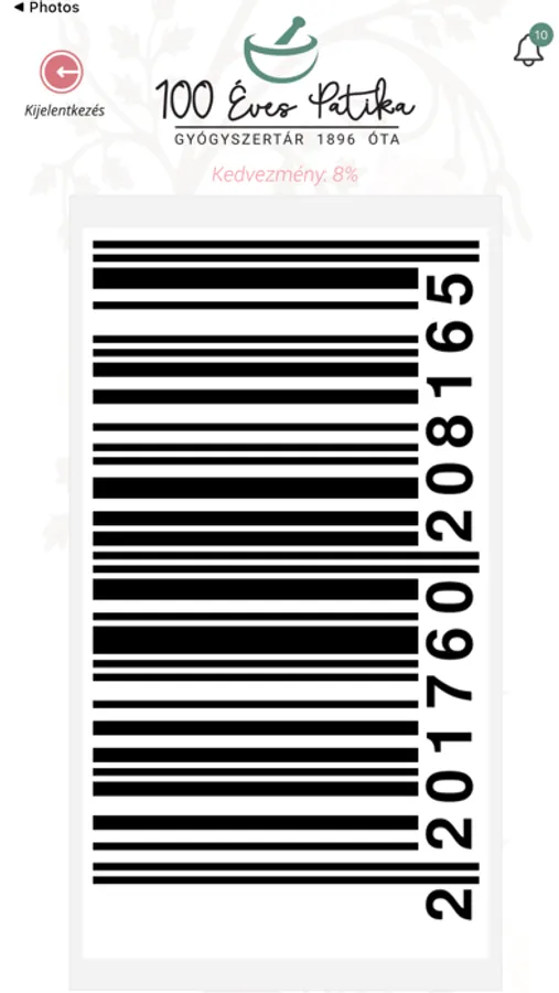 A 100 Éves Patika weboldalán regisztrált törzsvásárlók az alkalmazásba belépve tudják megjeleníteni a vonalkódot, ezzel pedig érvényesíthetik váráslásuk alkalmával a személyes kedvezményüket. Az alkalmazás használata nagyban megkönnyíti a törzsvásárlói kedvezmények kezelését, kényelmessé téve annak alkalmazását.