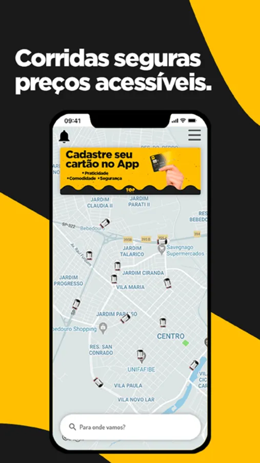 Basta abrir o app, escolher o seu destino e pronto! A TOP tem a melhor tecnologia para encontrar o motorista certo para você.