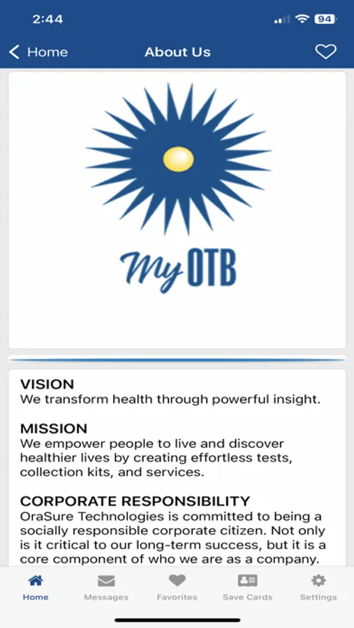 The MyOTB app provides everything you need to know about Orasure Technologies Inc! Simple navigation to resources gives you access to information you need, when you need it. The MyOTB serves as a wrapper around the services that Orasure has to offer, housed in one location and easy to access. Want to learn more? Download the app today!