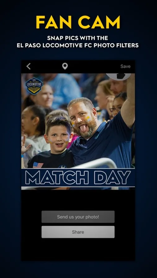 • Take matchday photos using custom overlays in FanCam, which lets you share your photos with the team and post directly to your social accounts