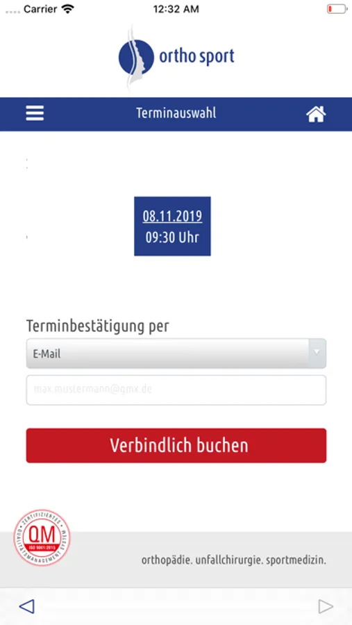 Die Wunschterminvergabe wird von ortho sport individuell freigeschaltet.