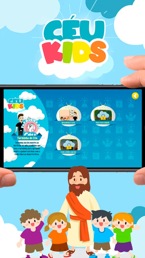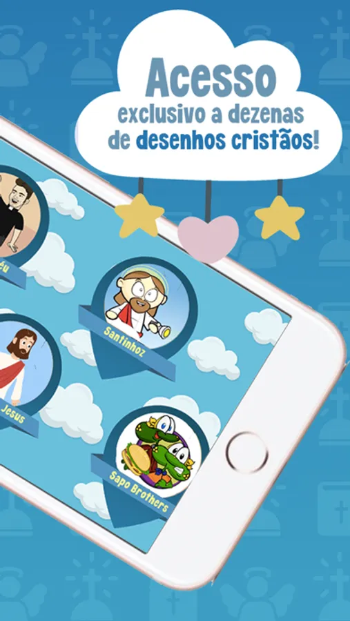 - App infantil (“Playkids cristão”) com centenas desenhos bíblicos e clipes musicais, sempre com a temática cristã selecionados por especialistas.