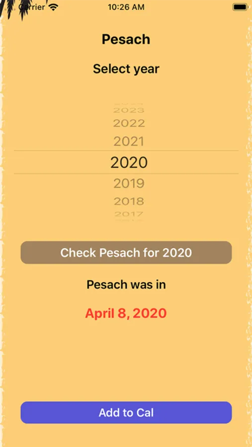 This app calculates for you the date when it will be (or was) the Passover (Jewish Easter) from the year 1000 to the year 3000 and add it to your calendar.
