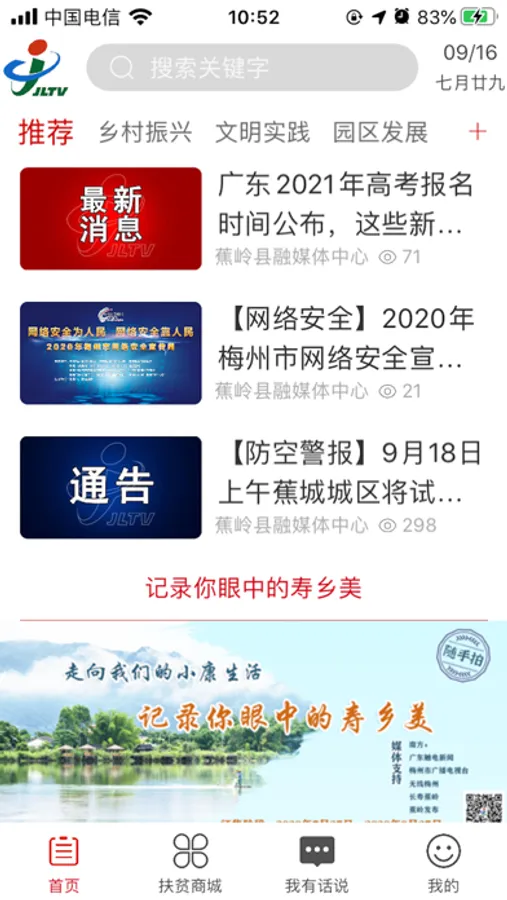 蕉岭本地权威信息渠道,包含蕉岭的资讯、时政、社会、视频、直播等。包含爆料,可随时随地进行爆料,商城展示主要为蕉岭当地土特产,新闻回放为当地权威第一首视频新闻材料,让您实时了解蕉岭本地的新闻,风土人情。