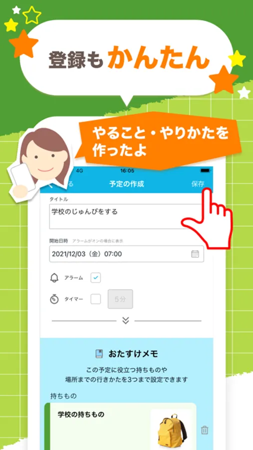 ・やりかた、行きかた、持ちものをかんたんに登録