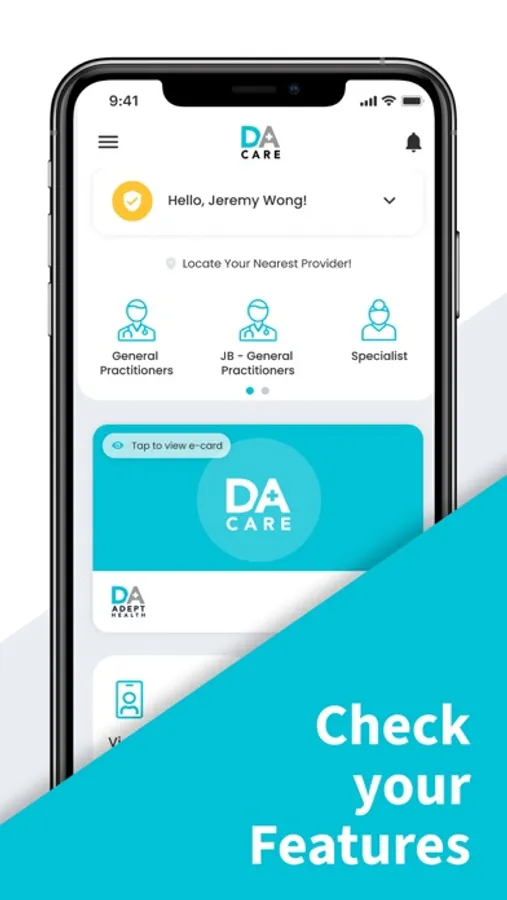 DA Care offers 12 features on its mobile apps that enhanced members’ overall experience. Members can Locate Clinic, uses e-Card, Request for Letter of Guarantee, Submit Claim, Check Claim Status, View Benefits, Notifications, Video Consultation, Profile, Settings, Appointments, FSA Balance.