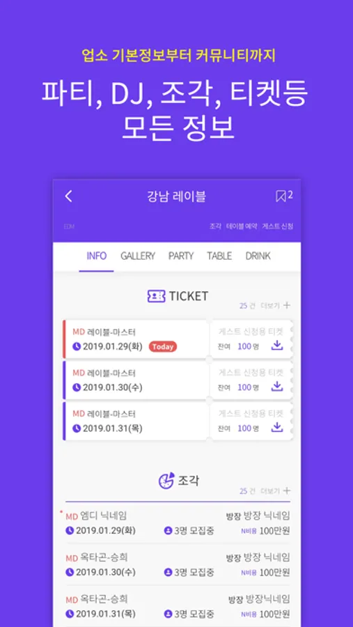 [클럽, 나이트, 라운지, 조각, 테이블 예약, 게스트 신청, 갤러리, 파티,커뮤니티, MD ]