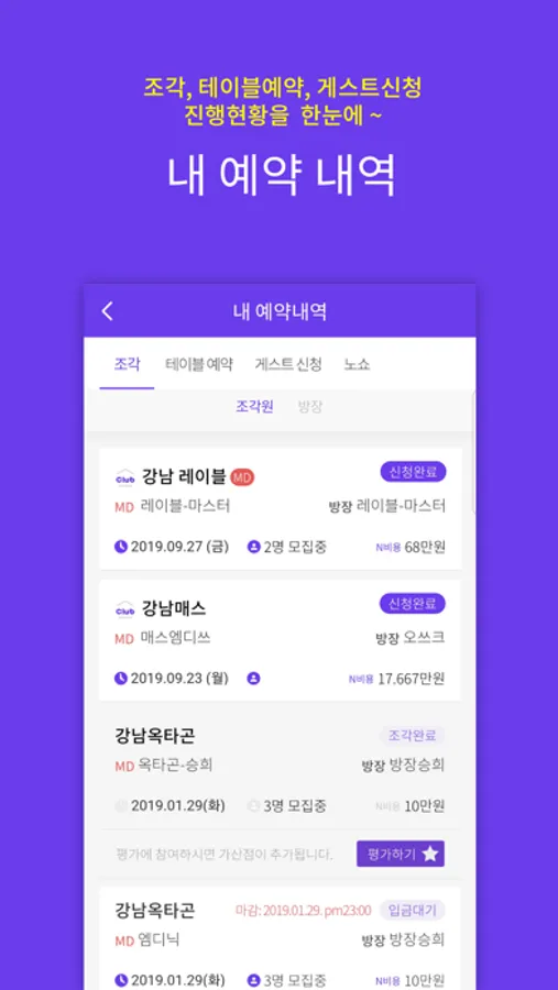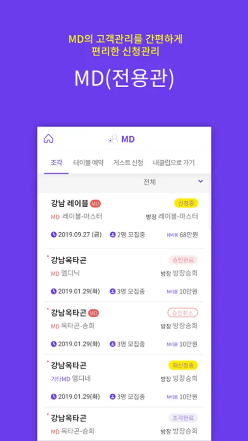 - 전국 클럽 조각관리 & 게스트 신청 & 테이블 예약이 간편해집니다.