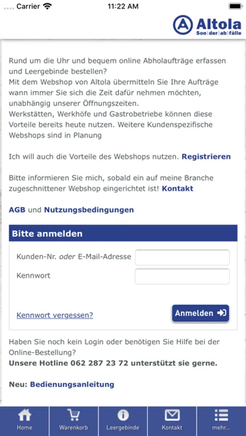 Rund um die Uhr und bequem online Abholaufträge erfassen und Leergebinde bestellen?