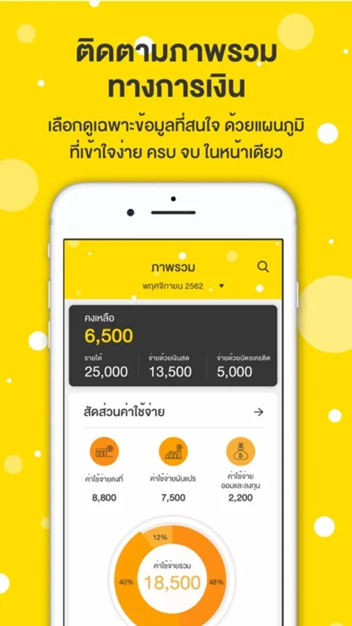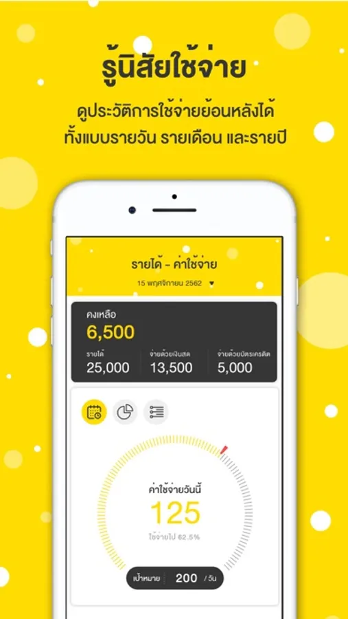 • บันทึกรายได้และค่าใช้จ่าย เพื่อติดตามพฤติกรรมการใช้เงินได้แบบรายวัน รายเดือน และรายปี