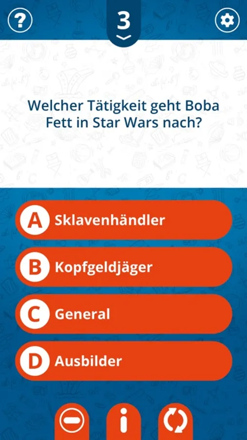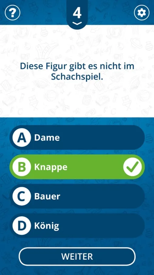 Die App enthält über 3.000 knifflige Fragen aus den Bereichen Geschichte, Geografie, Sport, Unterhaltung, Politik, Kunst, Literatur, Wissenschaft, Technik, Kurioses und vieles mehr.