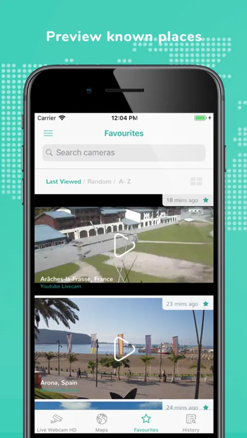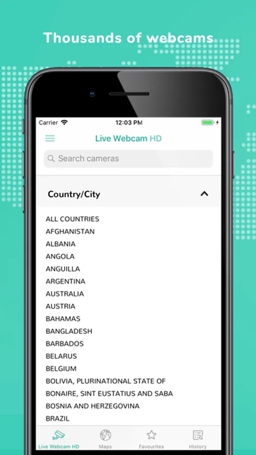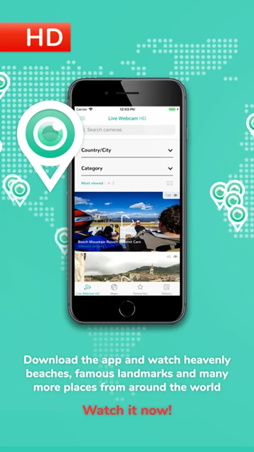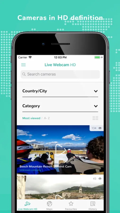 In our application you will find cameras located in different places all over the world. You can see what is happening at any given moment on a beautiful, tropical beach, high in the snowy