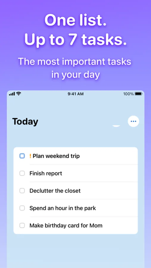 Once you reach the limit, you must complete or delete a previous task to add a new one. So the list always stays short, and never becomes overwhelming.