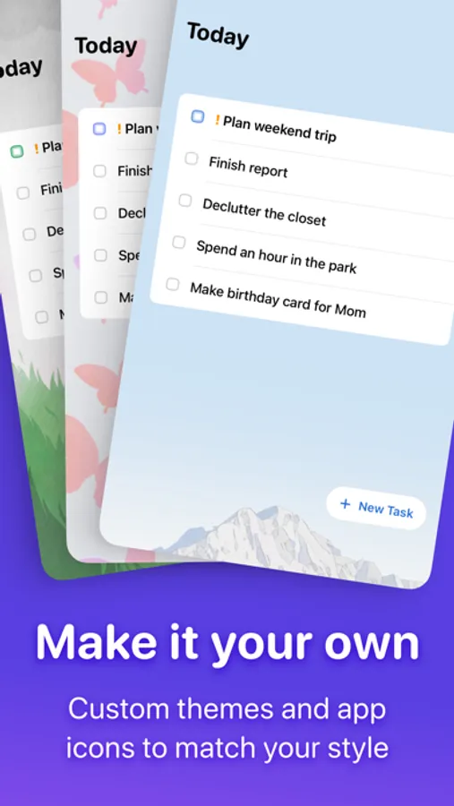 From adding a new task, to setting a timer or reminder, to marking a task as complete: everything has been carefully designed to be quick and smooth, so that you can be in and out of the app in seconds.