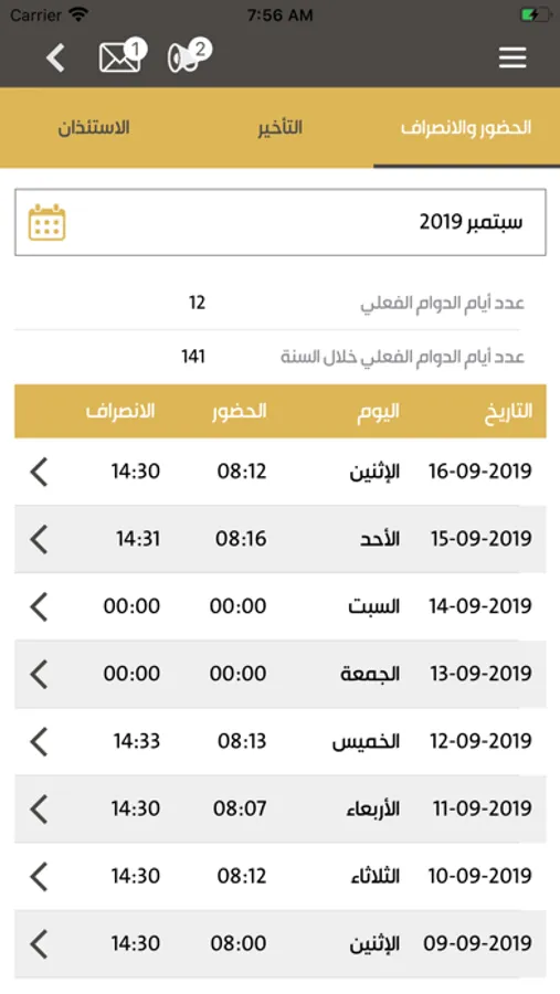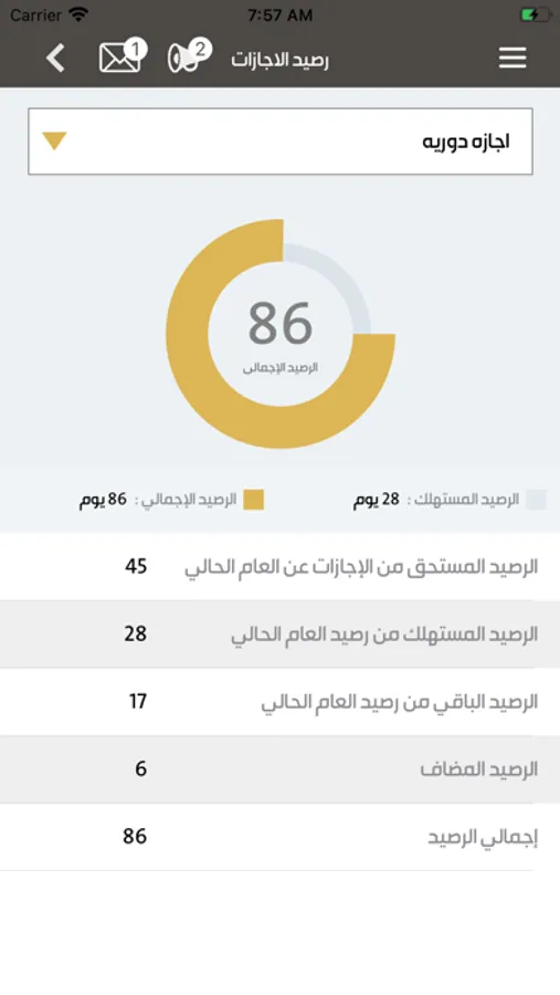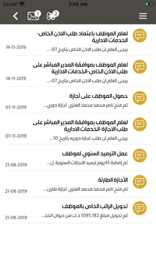 • يمكن المستخدم من تلقي أي رسائل نظام حول وظيفته أو إجازته أو راتبه ... إلخ