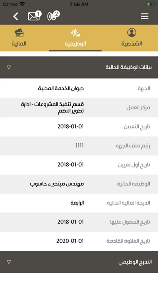 • يمكن للموظف مراجعة بياناته الشخصية والوظيفية والمالية