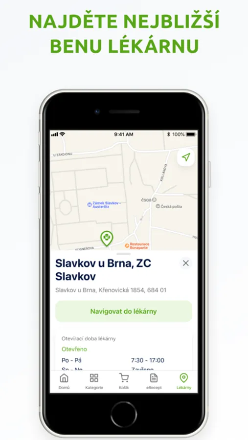 V naší aplikaci vždy najdete nejbližší BENU Lékárnu včetně informací o její otevírací době a odborných službách, které nabízí. Stejně snadno si ve vybrané lékárně zarezervujete léky předepsané eReceptem. Aplikace vás navíc sama informuje, že jsou vámi rezervované léky předepsané eReceptem připraveny k vyzvednutí. Díky Zprávám z BENU nepřijdete o žádnou aktualitu ze světa lékáren BENU a v našem Lékovém kalendáři si snadno nastavíte upozornění na užívání všech vašich léků.