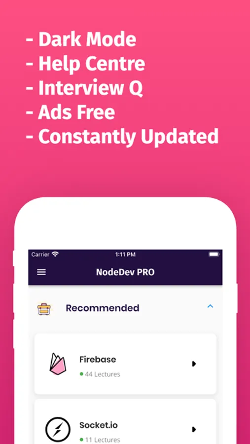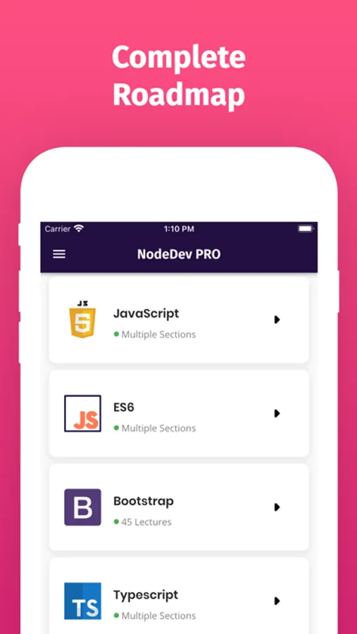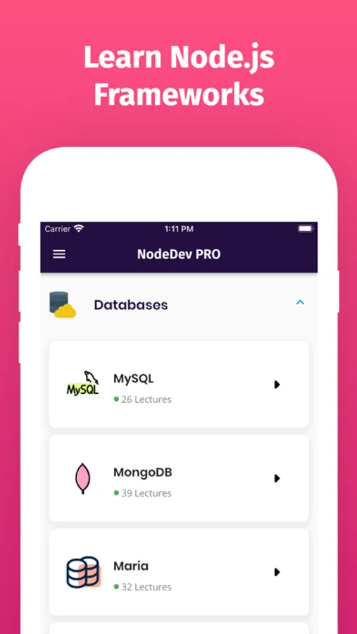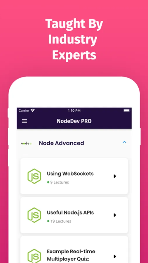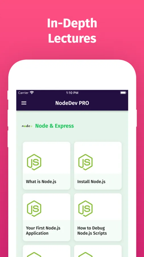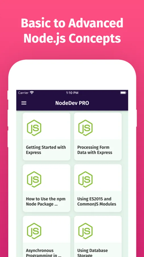 With this app, you will not only master node.js programming but can also learn other popular node.js frameworks and tools. This app will make you a complete job-ready node.js developer. So if you are a new Programmer or starting Node.js Programming and want to build rich and Fast Web Apps or if you are already a Node.js Programmer then this app will be a great pocket reference guide for Node.js Programming.