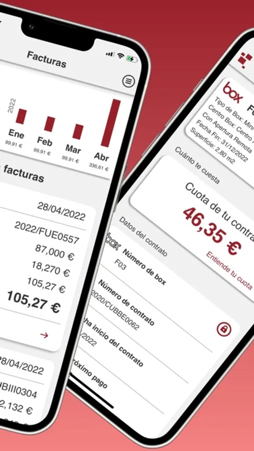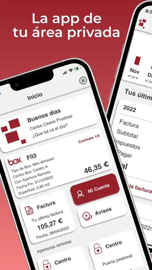 Con All Box app podrás acceder a toda la información al respecto del alquiler de tu trastero, como consultar tus contratos de alquiler de trasteros o tu última factura; recibir o enviar avisos a tu centro de Self Storage; o realizar la apertura de accesos y alarmas, tanto de zonas comunes como privadas, desde tu smartphone.