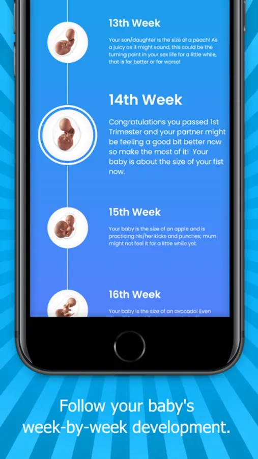 This App also features easy and quick photo sharing so that you can spend more time with your baby and less time on your phone by making that special announcement effortlessly. Reputable sources of information are used and include but not limited to the World Health Organization.