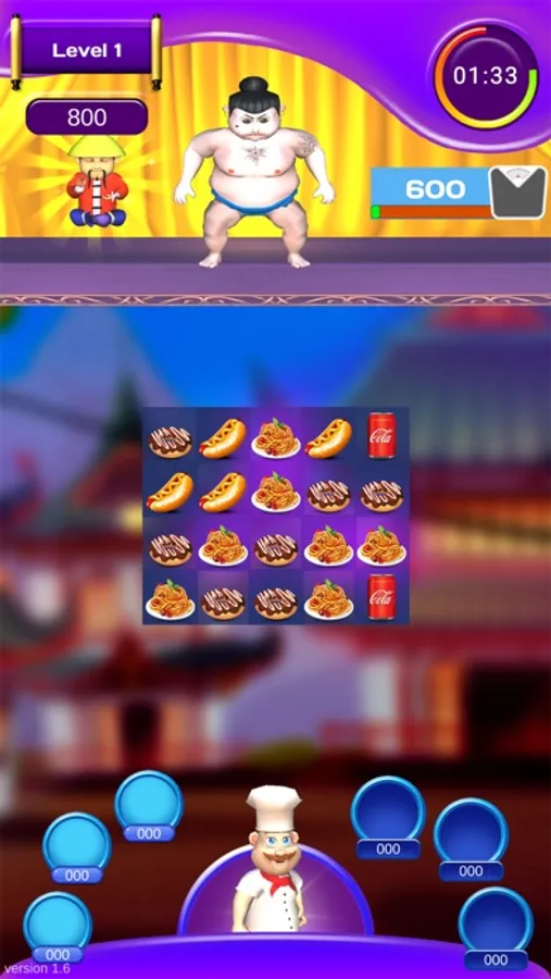 “I have a hunger of a thousand men, feed me!!!” And feed him you shall, as a player you will take on this new strategic puzzling challenge, defending yourself against time and an angry Sumo that has a massive hunger that may determine your fate. Feed the Sumo by making matches of three or more before your time is up. In this game you can match and create special weapons, leading to explosions, and having unique power-ups in your arsenal to feed you way to victory.