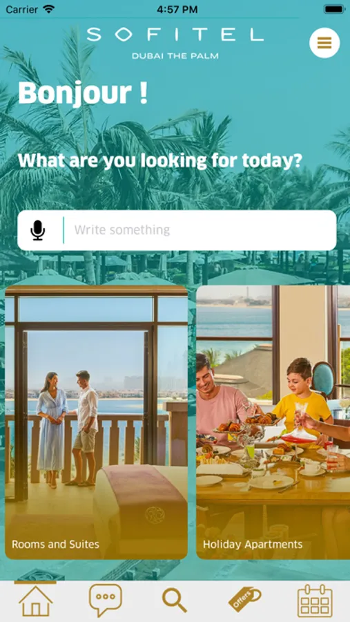 Discover new experiences and learn how to live the French way while enjoying exclusive offers at our Polynesian-inspired beach resort in Dubai. Download our lifestyle app for unlimited access to special offers at over 10 restaurants and bars, an award-winning spa and sports facilities. Chat with us live, get reminders on upcoming events and appointments or simply order your favorite snacks straight to your room or sunbed with a single click.