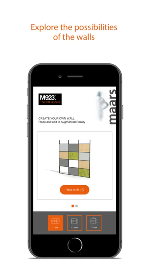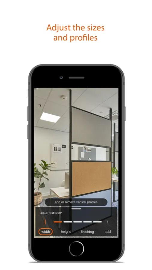M923. gives you the freedom to create a customized dividing wall in your space, using your smartphone and AR technology. The app enables you to place and design a true-to-scale wall in any space. You can play with our patented profiles and different panels to customize the wall to your liking, and visualize where it would go and what it would look like.