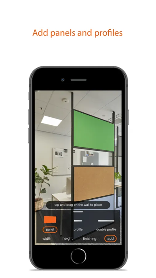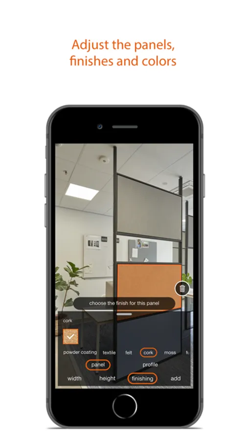With just one tap, you can easily add or remove profiles and panels. In the menu you can choose a range of panel finishes such as cork, moss, felt, textiles, or powdercoat colors. With the app, you have the freedom to make changes easily and create a whole new design.