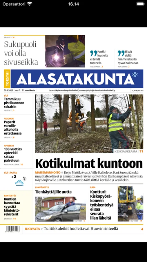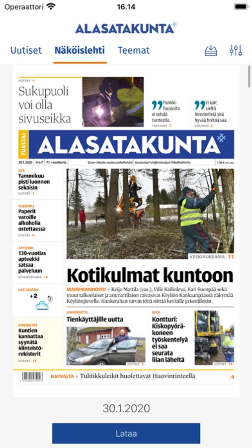 Alasatakunta -sovelluksen kautta pääset kätevästi lukemaan viimeisimmät verkon uutisartikkelit paikallisista aiheista ja näköislehdet.