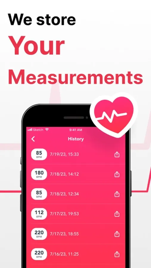 - Share your heart rate measurements on social networks like Facebook & Twitter or via email