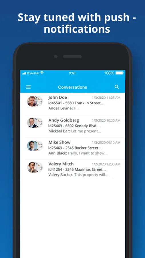 Stay tuned and receive all updates with the help of push-notifications. Tap on push and it will navigate you directly to the necessary chat.