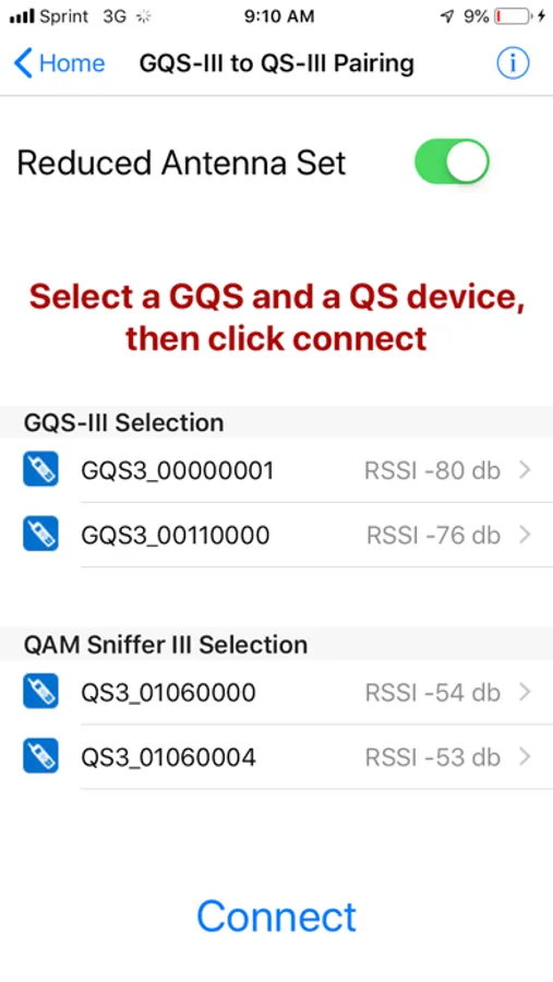 The ComSonics pairing app is used to wirelessly connect the ComSonics QAM Sniffer-III and the ComSonics GQS-III devices together via Bluetooth.