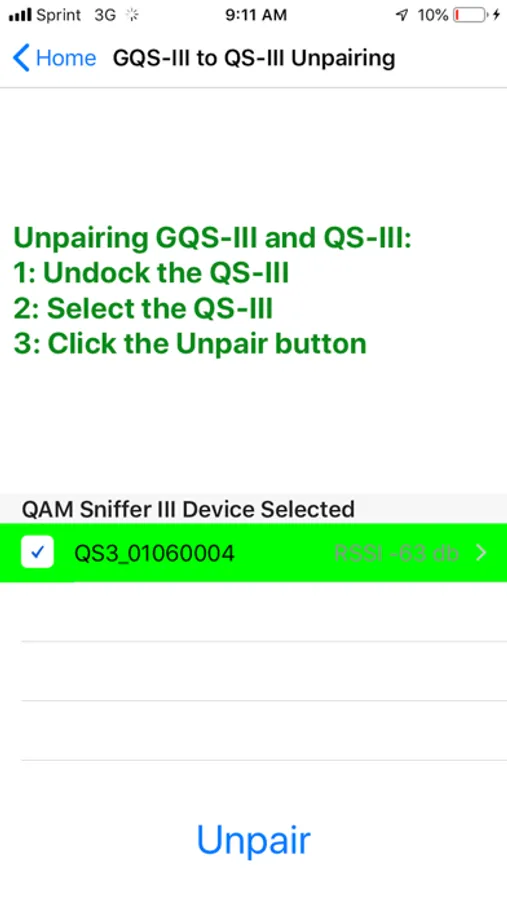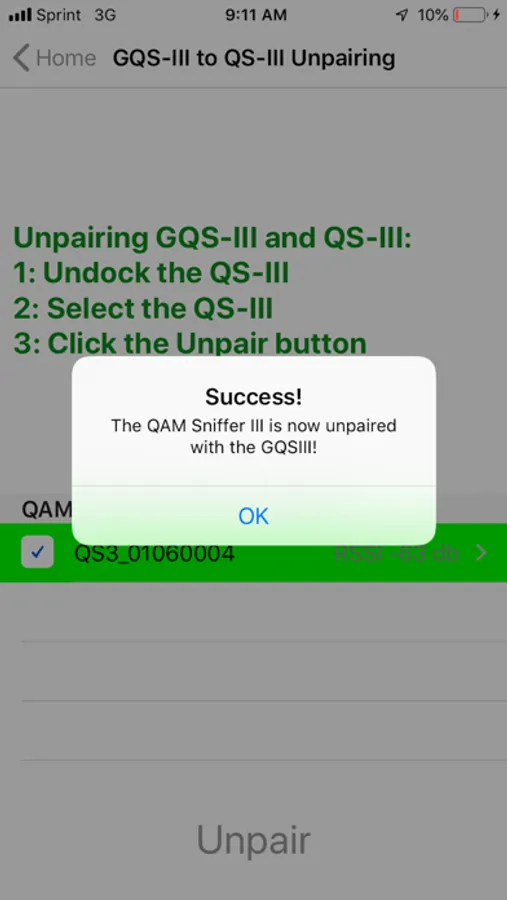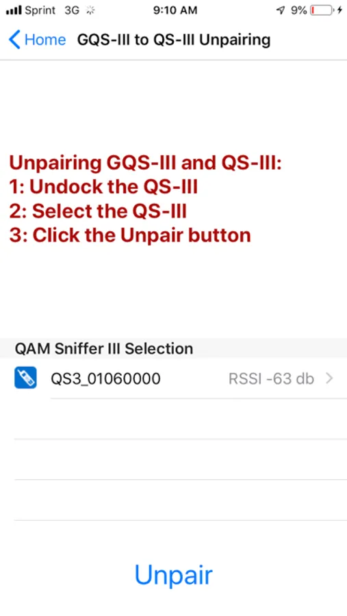 The pairing app can also be used to unpair the devices when desired. This is typically done when one of the two paired devices is replaced with another device.