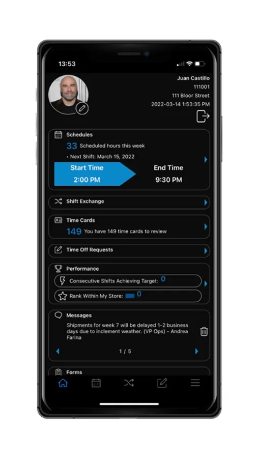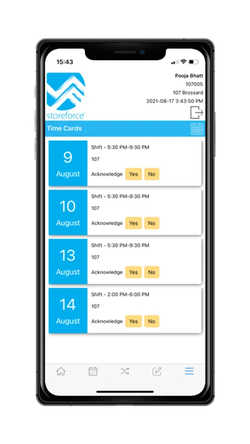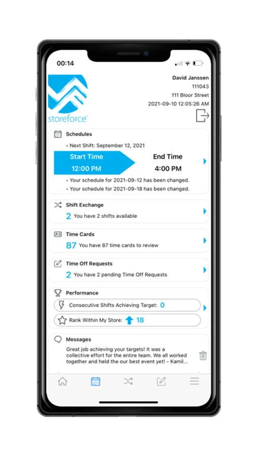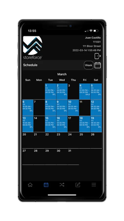 StoreForce ESS App allows employees of StoreForce Retailers to manage their schedules and time off requests, view their performance and receive communication updates. Options available will vary by Retailer.