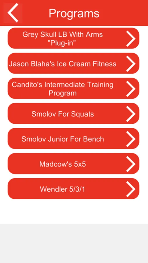 In the Training Programs app there are multiple programs you can choose from. All you have to do is input your maxes and the program will fill out a routine for you. There are many selections from the popular routine of 5/3/1 to the intense popular program of Smolov. As this is a new app on the market I would like suggestions to improve the application.