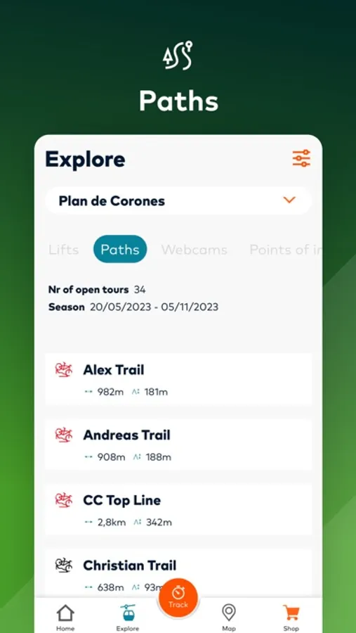 By reaching certain goals with the "Tracking" function, the user will be assigned interesting Badges - a great way to challenge yourself! And finally, you get to play too since the registered members of the APP-community can also have fun with the APP's game functions, creating their network of friends, who must also be registered members and in possession of a Dolomiti Superski ski pass and challenging each other throughout the ski season.