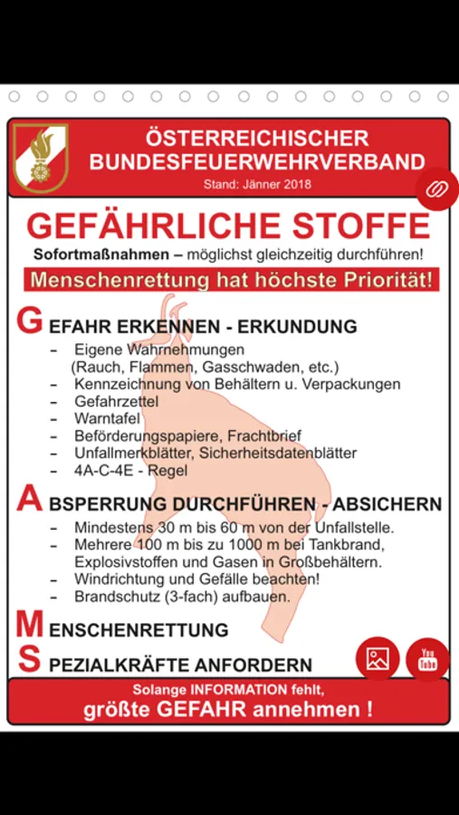 Der Gefahrgut – Blattler ist das Schnellnachschlagewerk für Feuerwehreinsätze mit Schadstoffen, Einsätze im Gleisbereich, Gefahren durch Elektrizität, KFZ mit Alternativantrieben, und vieles mehr.
